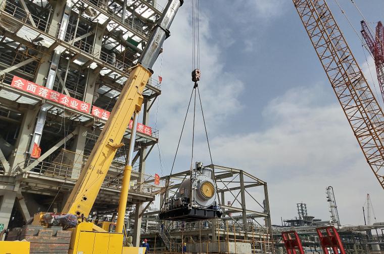 榆能化聚烯烴項目部相關負責人介紹,PP3裝置主反應器循環氣壓縮機是該裝置大力推進復工復產、疫情防控以來進行的首臺大型設備吊裝。吊裝前,相關單位通力配合,精心謀劃,提前搭設腳手架作業平臺等,有效減少了高處作業,大大降低了設備安裝風險。