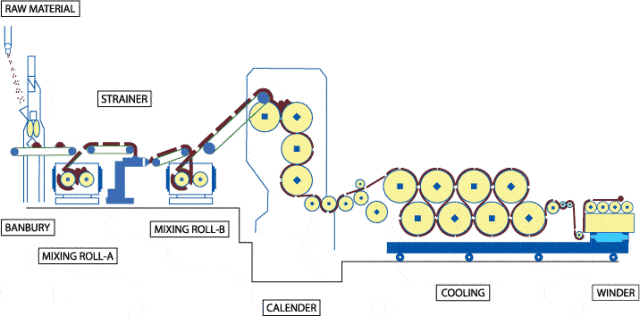 是指將熱塑性樹脂加熱到粘流溫度成為熔融體,通過兩個以上的平行異向旋轉輥筒間隙,使熔體受到輥筒擠壓延展、拉伸作用而成為具有一定規格尺寸和符合質量要求的連續片狀制品,自然冷卻后成型。