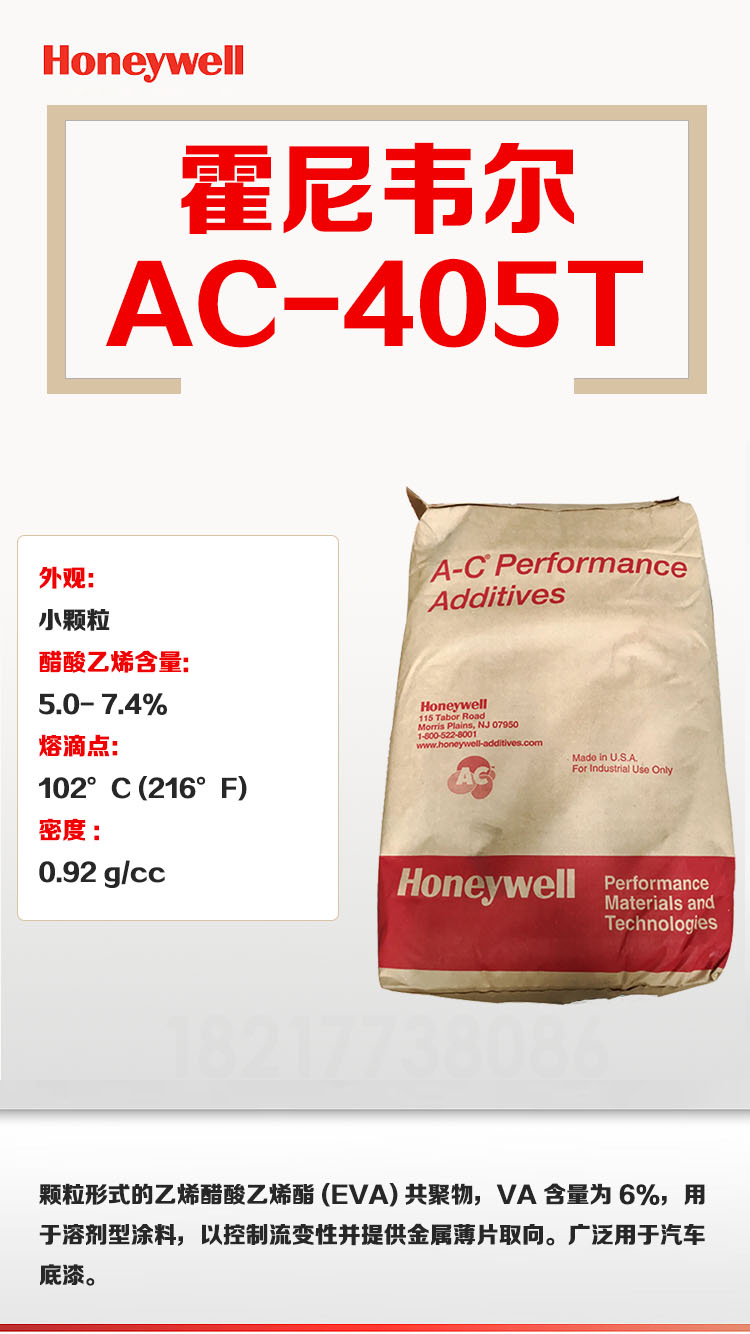 美國霍尼韋爾是世界上家生產聚乙烯蠟產品的公司,在聚合物科學領域,擁有超過45年研發和制造經驗。今天霍尼韋爾仍然是世界上領先的低分子量聚乙烯和共聚物的生產廠家,霍尼韋爾的技術優勢非常明顯,可以提供一系列不同化學組合、性能和粒徑產品,以滿足您在任何涂料應用上的需求。