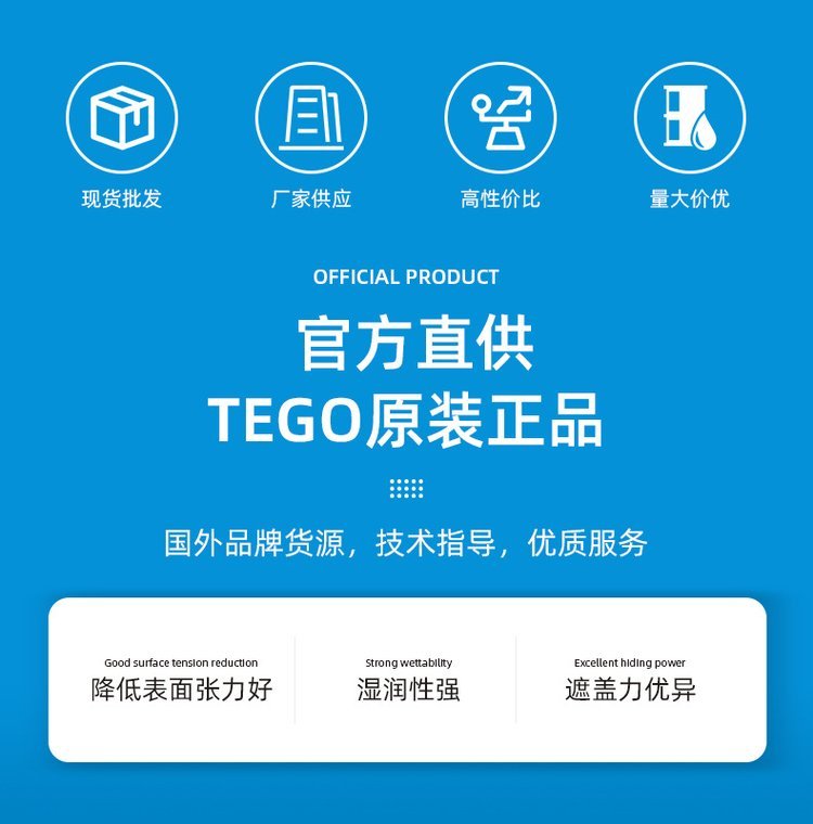 迪高TEGO432流平劑是一種性能優異的多功能流平劑,迪高TEGO Glide 432手感流平劑,特別適用于UV輻射固化體系、突出的基材潤濕性、提高抗擦傷性、高效、不穩泡. 具有優異的手感. 迪高TEGO432滑爽劑能改善流平性、潤濕、增滑和提高抗劃傷能力,迪高tego432流平劑并可防止縮孔和防止顏料浮色。