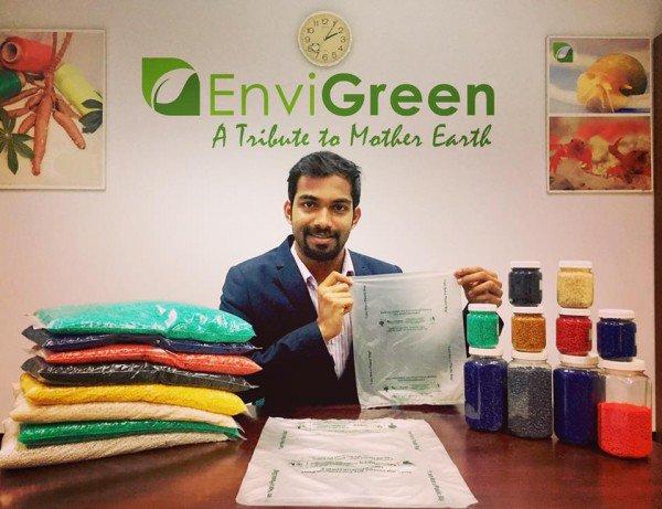 Envi Green公司表示這款塑料袋100%的有機,環保且可降解,同時甚至是能吃的。這款塑料袋采用的是土豆、木薯、玉米、天然淀粉、植物油、香蕉、花油等等12種天然原料轉化成液體,之后通過六個繁瑣的步驟加工生產成塑料袋,但因為涉及到商業保密內容,他們沒有透露過多的消息。而且從他們所用的原材料可以看到,這是一款可食的產品,放入熱水中十幾秒便能溶解,變成可食的。