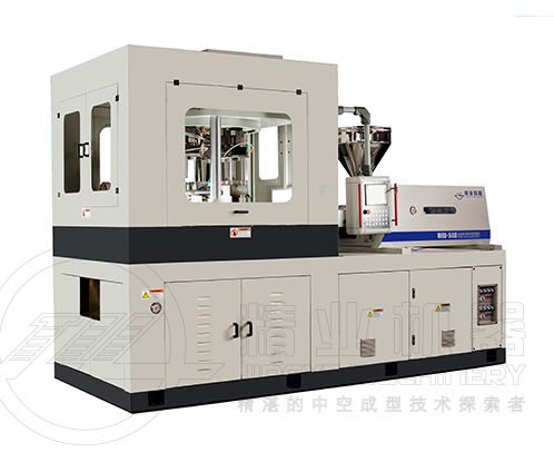 ????????該機型采用三工位結構,即第一工位注射瓶坯,第二工位拉伸吹瓶,第三工位脫瓶,其優勢在于管坯注塑成型后,利用自身所保留的熱量,直接進行拉伸吹塑,避免了管坯先要冷卻,損失熱量,然后再加溫,能量反復消耗的缺點。產品只一次成型,沒有中間轉運環節,徹底杜絕管坯相互碰撞的可能性,保證了極高的外觀質量。