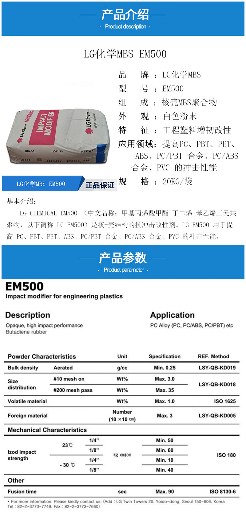 - MBS增韌劑 韓國LG EM500 抗沖擊改性劑 PC ABS工程塑料增韌 mbs50 物性表, MBS增韌劑 韓國LG EM500 抗沖擊改性劑 PC ABS工程塑料增韌 mbs50 產品參數,MBS增韌劑 韓國LG EM500 抗沖擊改性劑 PC ABS工程塑料增韌 mbs50 性能表,MBS增韌劑 韓國LG EM500 抗沖擊改性劑 PC ABS工程塑料增韌 mbs50 出廠報告, MSDS,, 物質安全資料表, UL黃卡,{ SGS報告, RoHS, 食品級認證, NSF飲用水標準, 產品資料, 產品性能, 出廠報告, 原廠原包, 代理商, 熱變形溫度, 熔指數, 流動系數, 抗沖擊性能、沖擊強度, 低溫韌性、低溫抗沖擊性能, 熔體流動系數、熔體流動速率, 加工工藝、加工參數、加工溫度, 歐盟RoHS 德國FDA 美國FDA 日本FDA